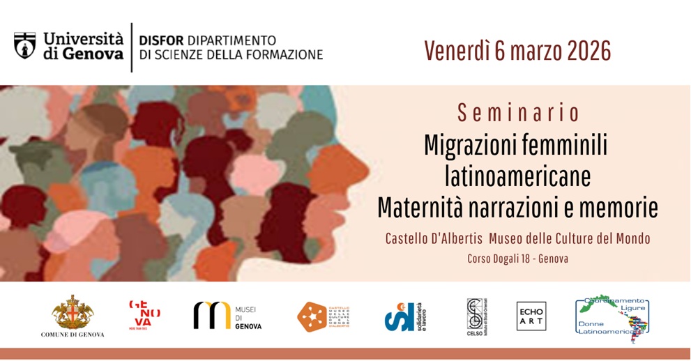 La prof.ssa Francesca Lagomarsino, docente presso il Disfor, insieme al Co.Li.Do.Lat, Coordinamento Ligure Donne Latinoamericane, coordina un seminario sulle migrazioni femminili latinoamericane con l’obiettivo di discutere e riflettere sul tema, in forma collettiva e interdisciplinare, a partire da alcuni studi condotti negli ultimi anni, sia nel contesto genovese che in quello nazionale e internazionale.